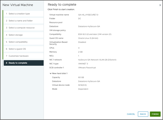- Click Next to verify the configuration, then click Finish to complete the creation of HySecure Gateway on your vSphere VM.