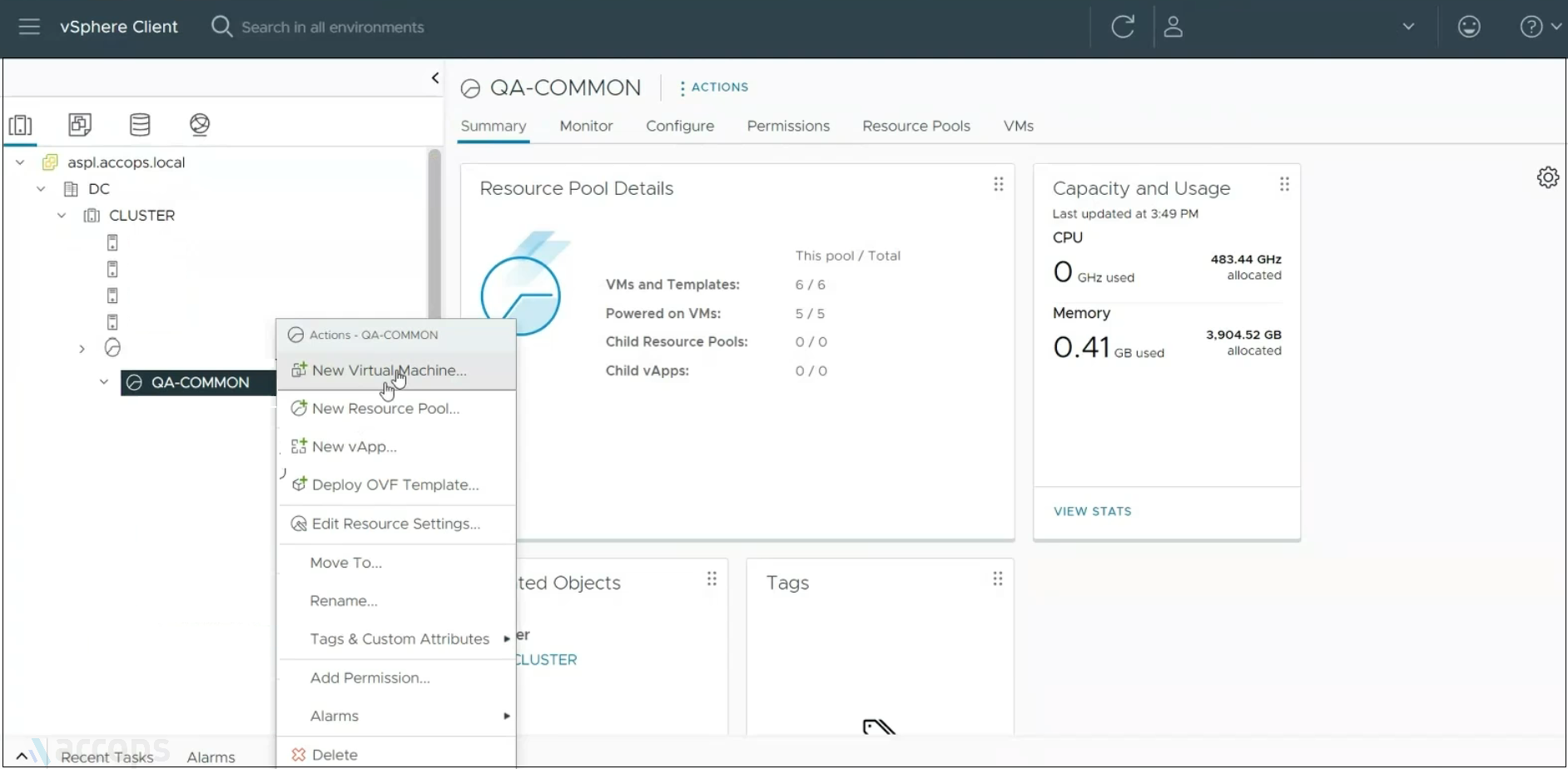 - Log into vSphere Client and navigate to the appropriate Resource Group.