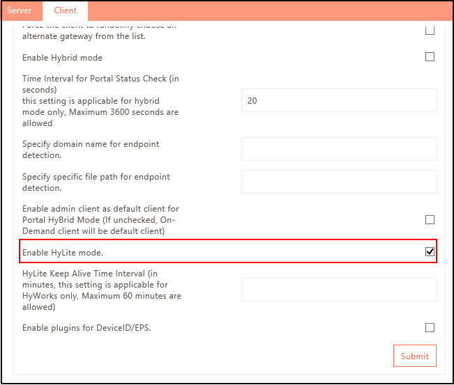 Web Portal Login mode: HyLite or HySecure Web Portal mode