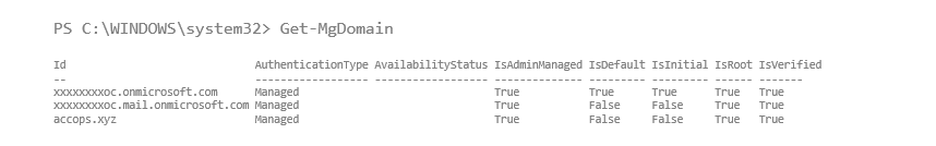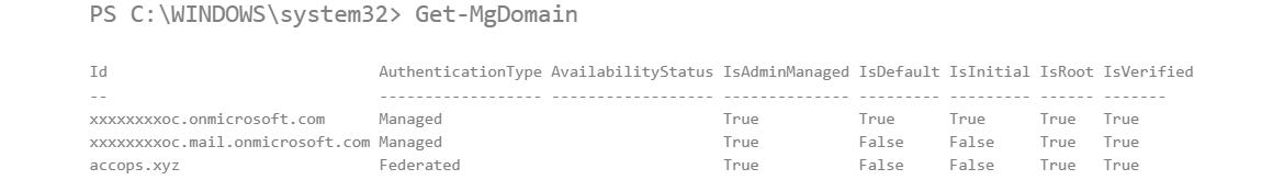 Update-MgDomain -DomainId "accops.xyz" -BodyParameter @{AuthenticationType="Managed"}