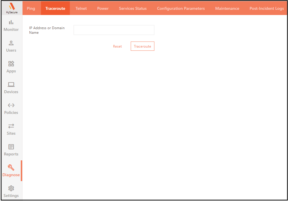 - Go to Diagnose > Traceroute.