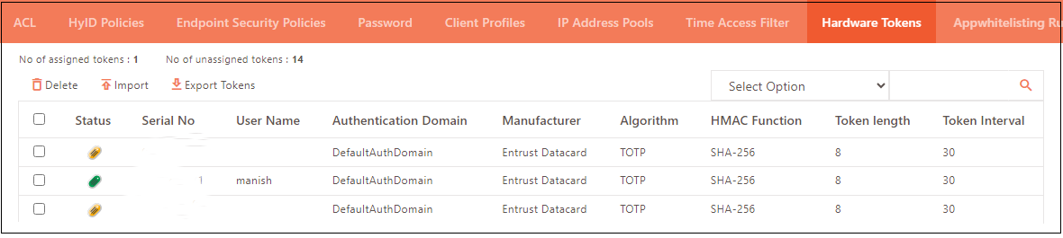 If everything is correct, the hardware tokens will be imported automatically, and the administrator can view the list of hardware tokens.