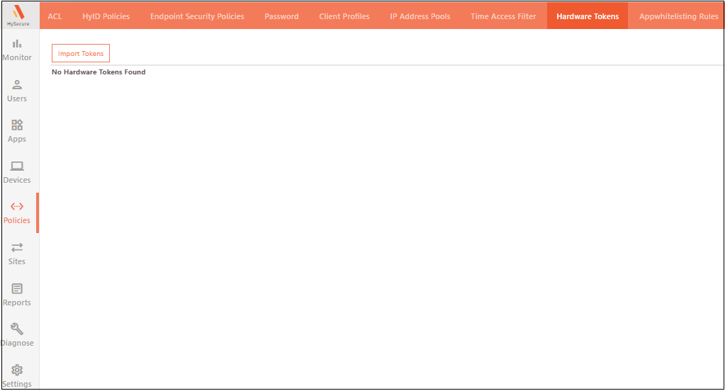 HySecure supports the use of hardware tokens as the second factor of authentication. The individual tokens can be assigned to users to perform additional authentication. Hardware tokens can be assigned to local, AD, LDAP, and RADIUS users. Only TOTP-based tokens are supported currently.