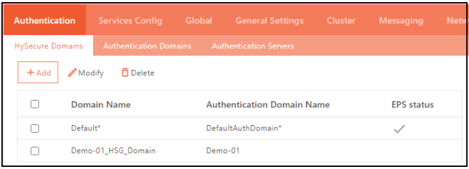 | Authentication Domain Name | Displays the Authentication domain linked with the respective HySecure domain. |