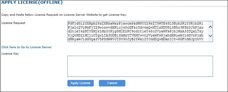 Provide the required information and click Apply License(Offline). An encrypted license request key will be displayed.
