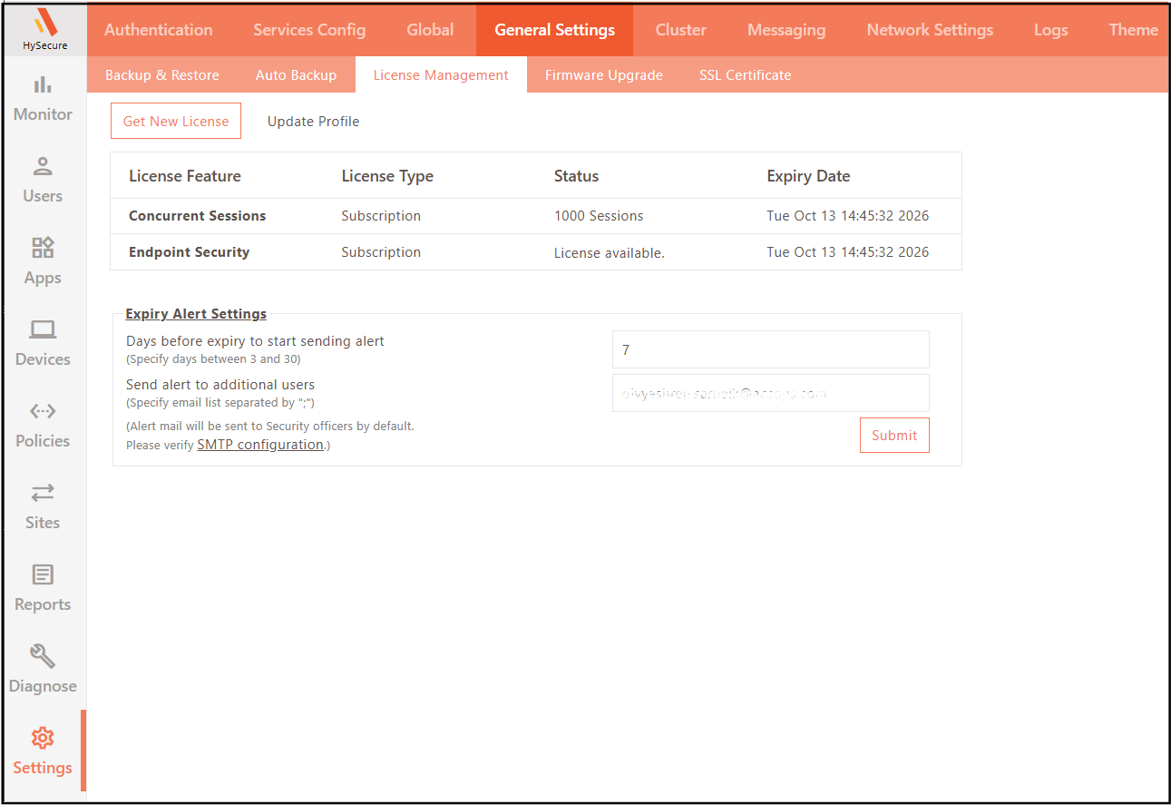 - Navigate to Settings > General Settings > License Management.