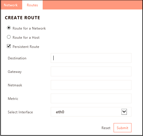 | Persistent Route | Check this option, if the route entry being created, is expected to be persistent across reboots. |