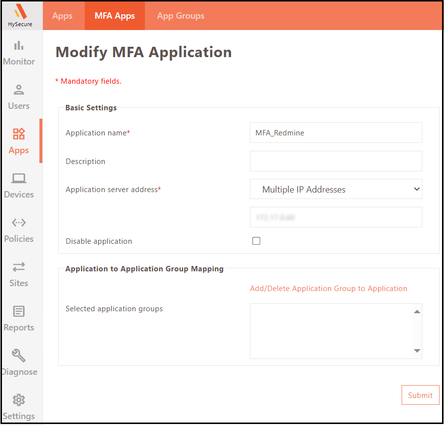 Enter MFA Application Group Name.