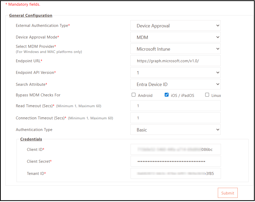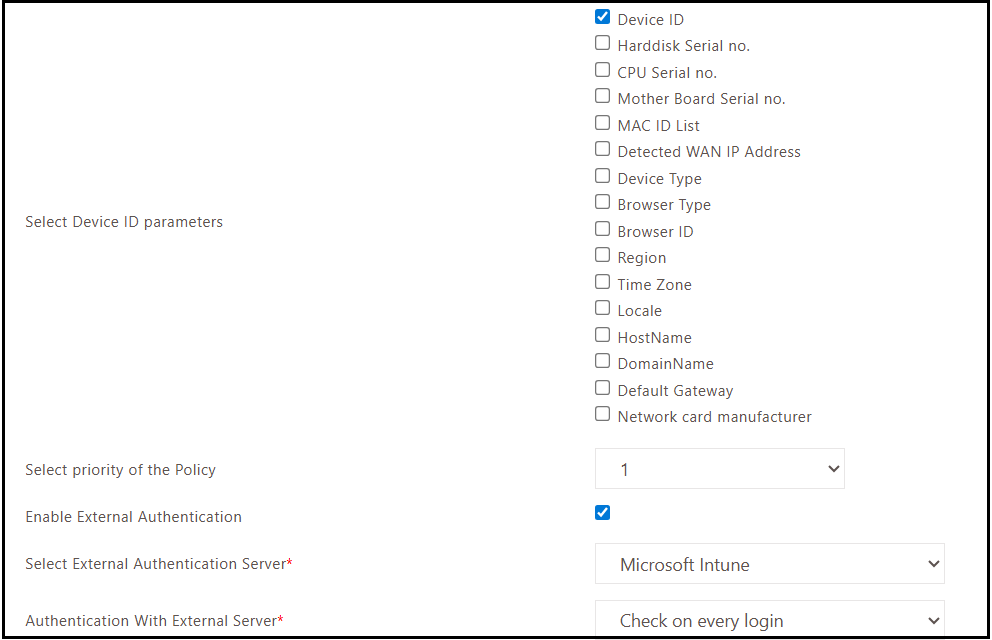 This guide explains how to configure device approval through the Microsoft Intune MDM server as an external authentication source. This feature enables automatic device approval for HySecure gateway access based on device registration status with Microsoft Intune MDM server, streamlining device management through existing MDM infrastructure.
