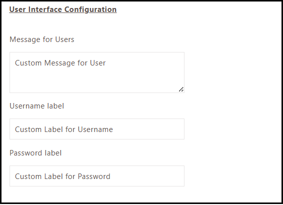 Verify that custom username and password labels appear.