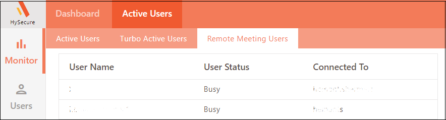 The Remote Meeting Users page shows logged-in users and their status.