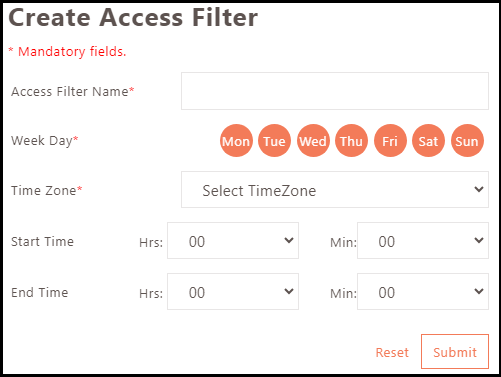 The Time Access Filter defines time restrictions based on time zone and start and end times. They are a part of the Access Control policies. This results in the restriction of user access to any application.