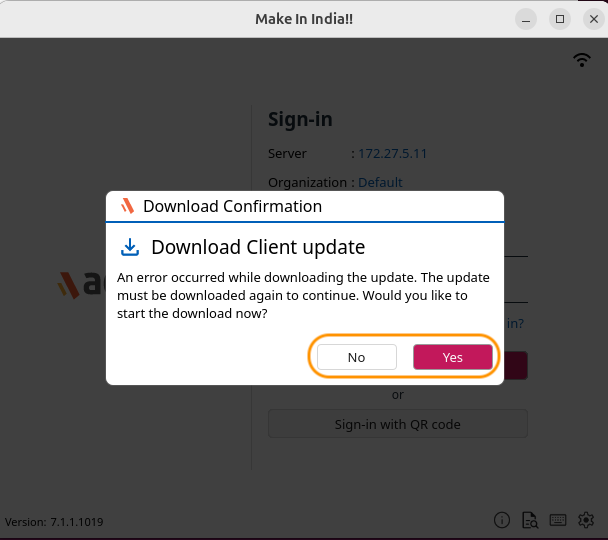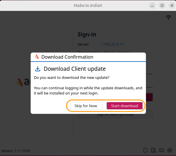 Once the download is complete, a consent notification for the upgrade will appear when the user logs in, logs out, or relaunches the client.