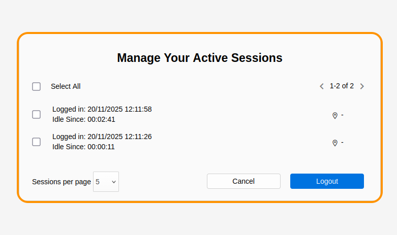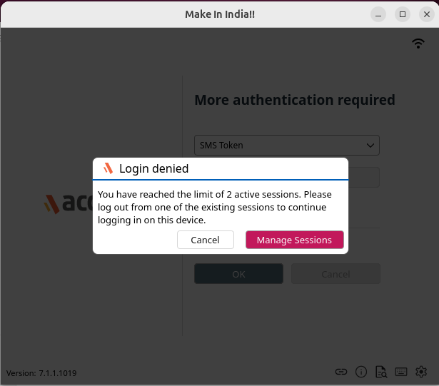 In such cases, a Session Self-Service Portal (SSP) link is provided below the login error message, allowing the user to manage or terminate active sessions.