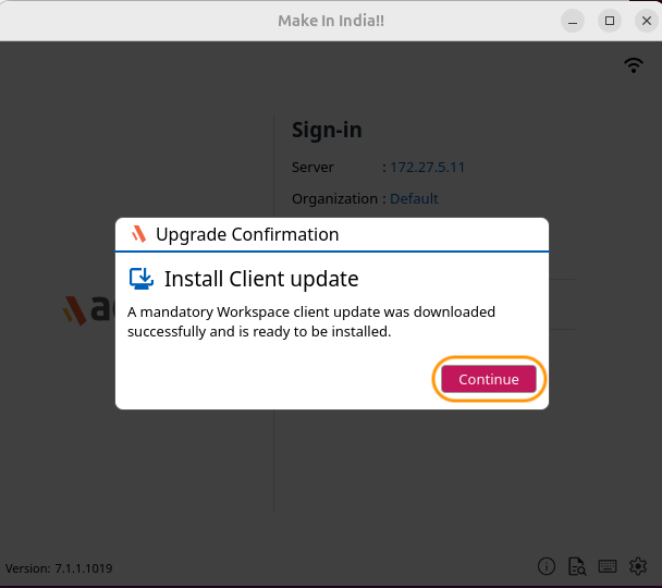 Click Install to approve the upgrade. The new version of the Workspace client will be installed.