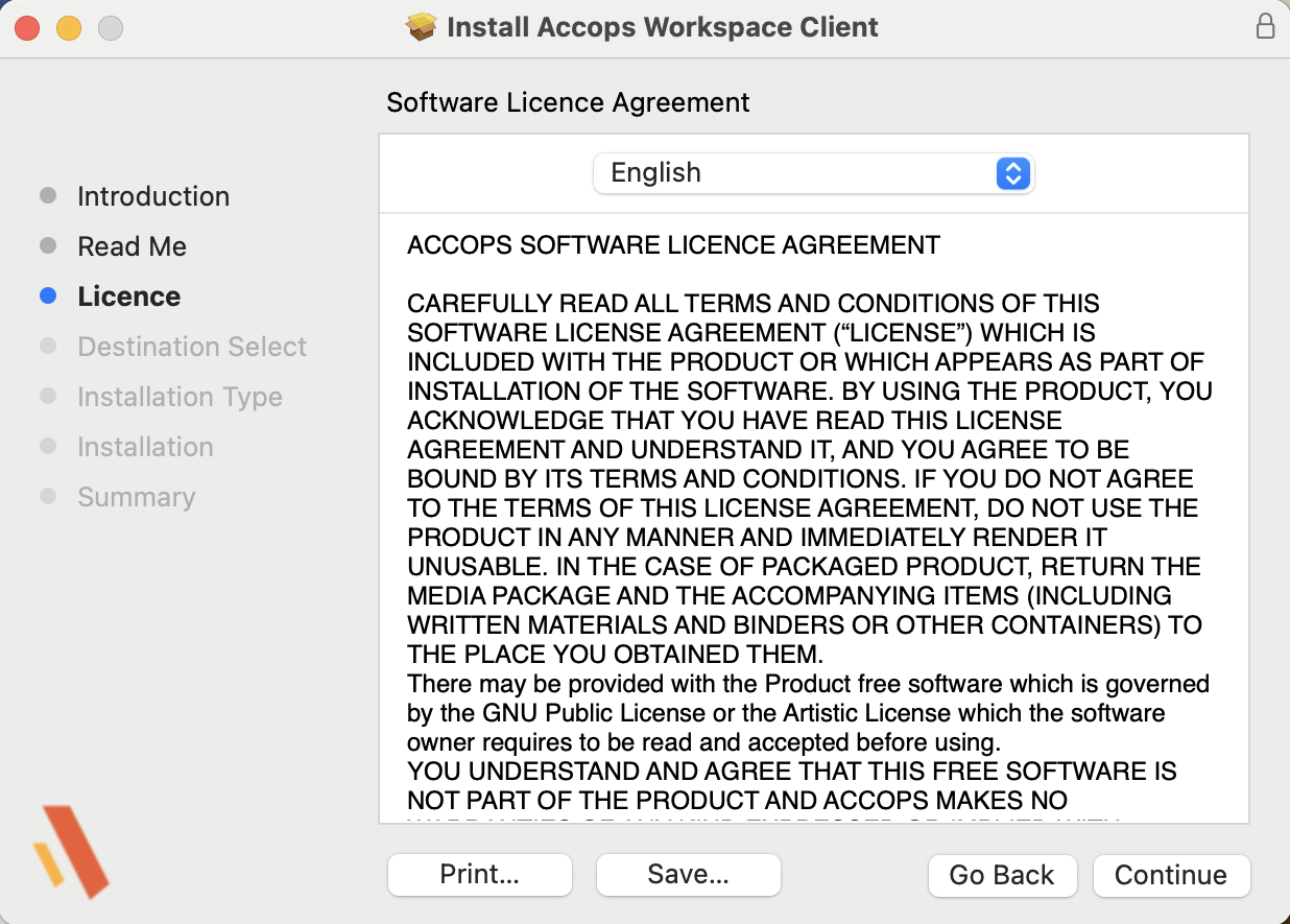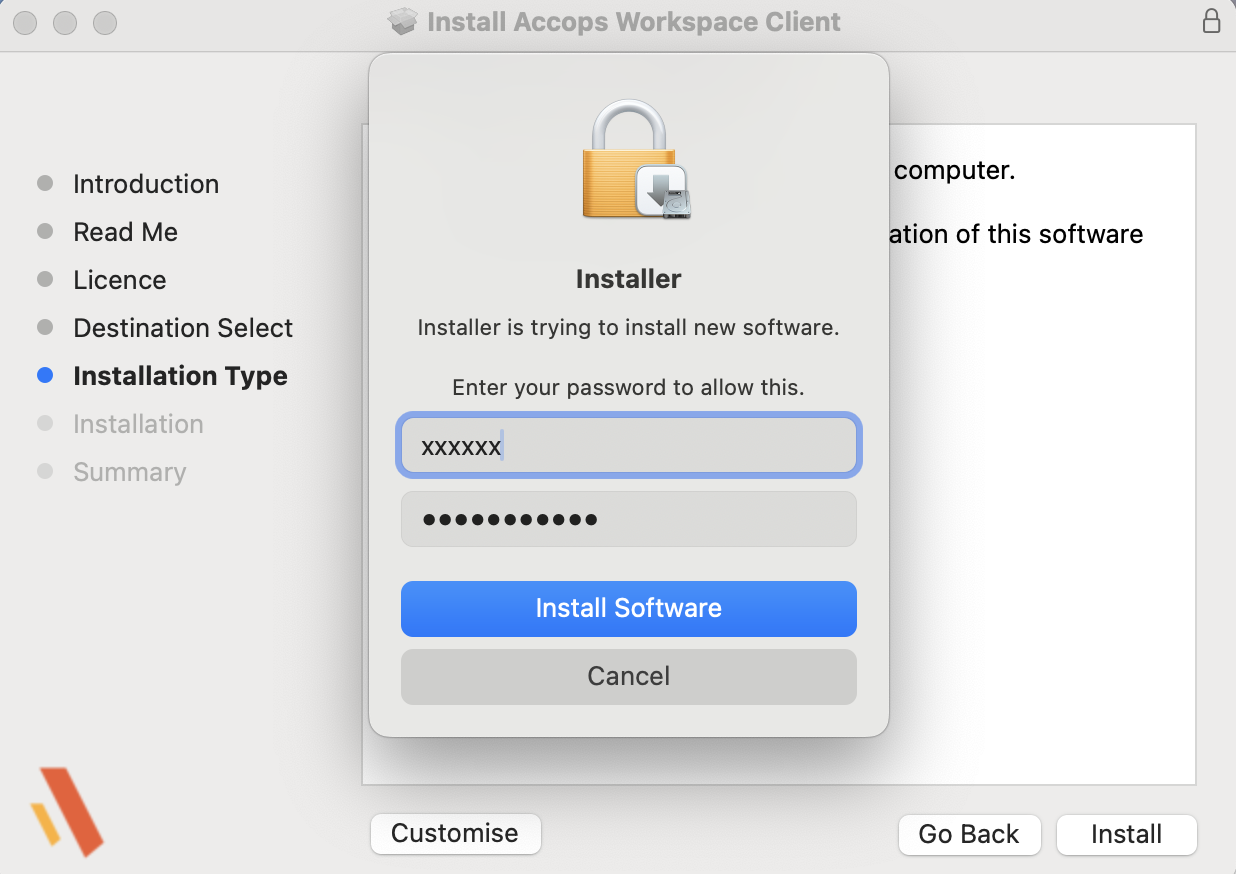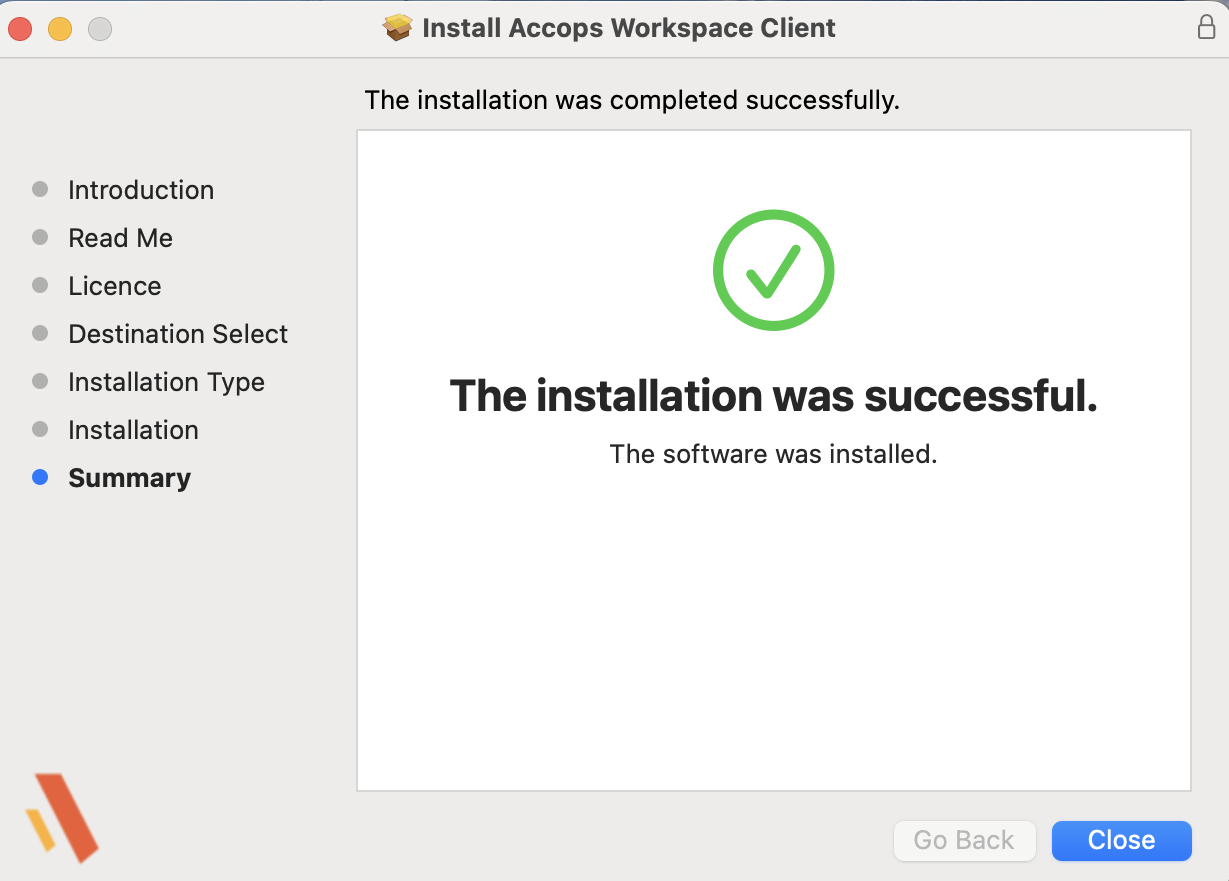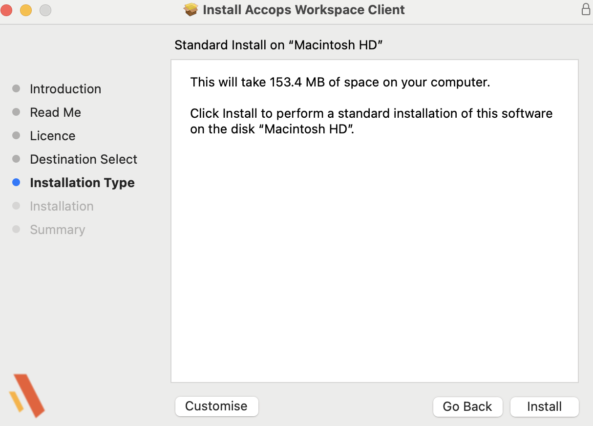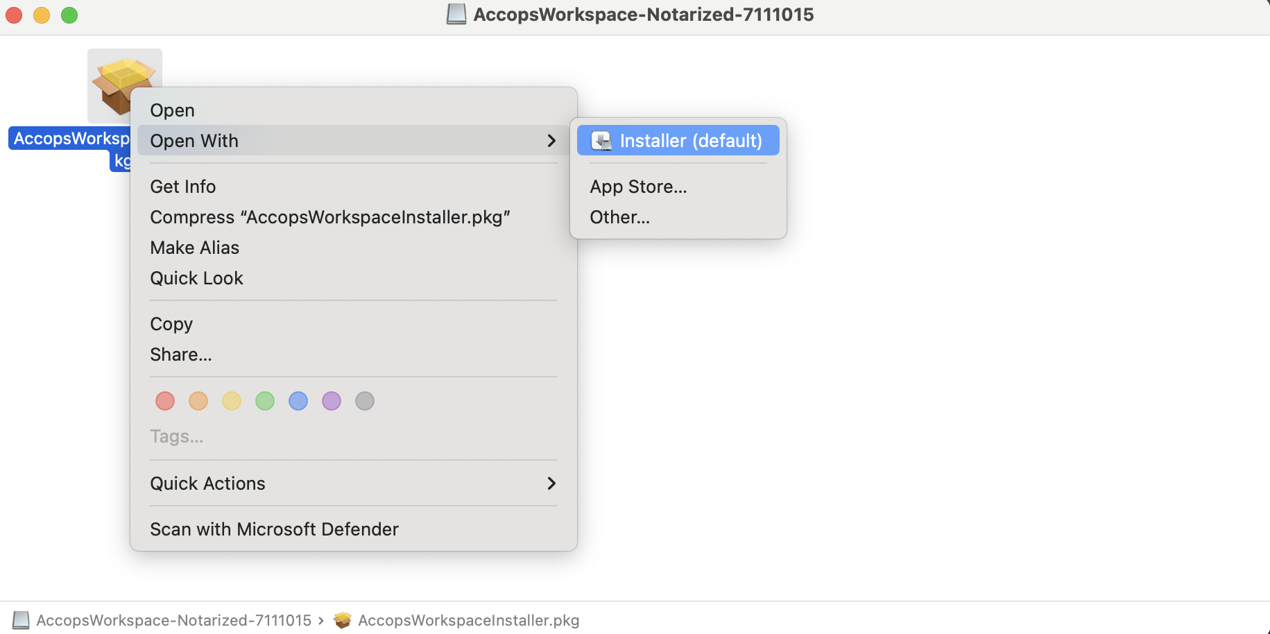 Right-click on AccopsWorkspaceinstaller.pkg and select the option Open With > Installer.