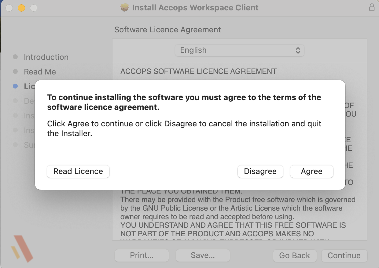 Click Continue to proceed with the licence agreement. A pop-up will appear. Click Agree to continue.
