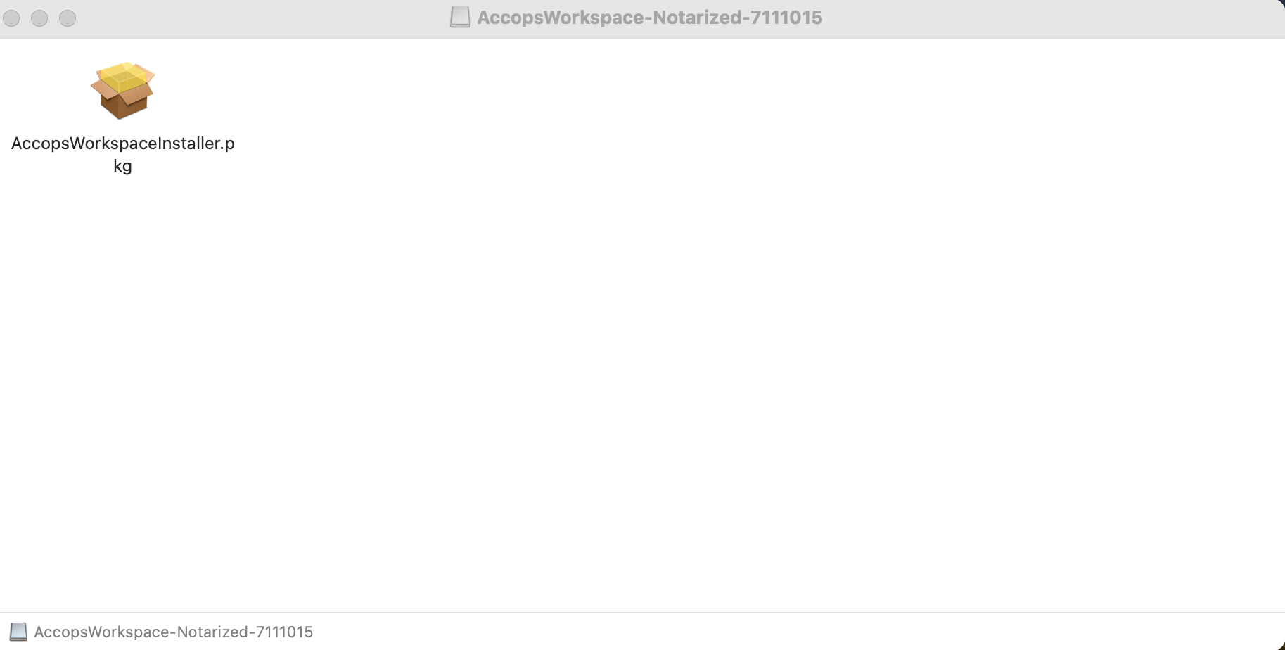 b. A window showing the contents of the dmg file, i.e., AccopsWorkspaceinstaller.pkg will appear.