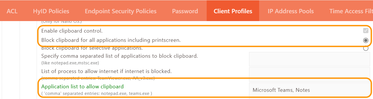 This means that administrators now have improved control over how users can copy and paste data using the clipboard. If clipboard blocking is enabled in the client profile on the Gateway, users will not be able to transfer information via copy-paste on the client.