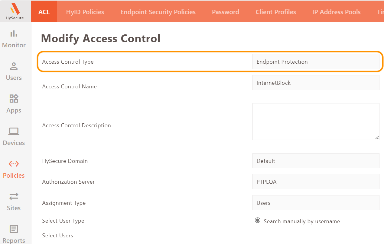 Now, create an ACL Endpoint Protection for users with Internet block.