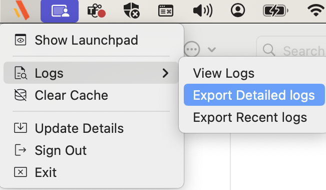 - Export Detailed Logs: Click to download a zip file of all the logs on the local device.