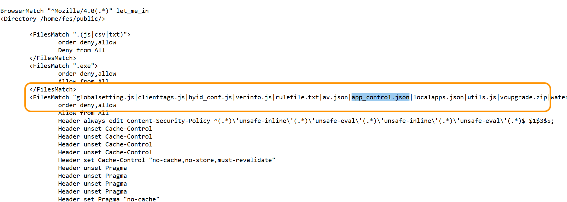 Add the following entry for app_control.json in the httpd.conf file as shown below.
